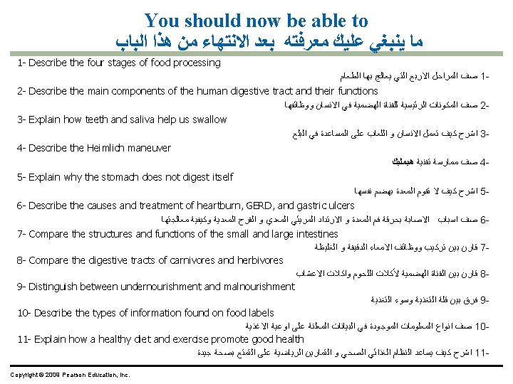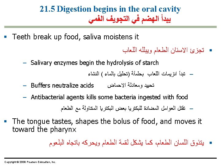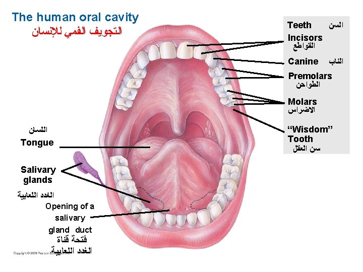 Oral cavity ﺗﺠﻮﻳﻒ ﺍﻟﻔﻢ Tongue ﺍﻟﻠﺴﺎﻥ Salivary glands Mouth ﺍﻟﻔﻢ Pharynx ﺍﻟﺒﻠﻌﻮﻡ Salivary glands ﺍﻟﻐﺪﺩ ﺍﻟﻠﻌﺎﺑﻴﺔ Esophagus ﺍﻟﻤﺮﻳﺀ Esophagus Liver Gallbladder Esophagus Stomach Sphincter Stomach Small intestine Liver Pancreas Large intestine Rectum Anus A schematic diagram of the human digestive system Sphincter Gall bladder ﺍﻟﺤﻮﺻﻠﺔ ﺍﻟﺼﻔﺮﺍﻭﻳﺔ Pancreas ﺍﻟﺒﻨﻜﺮﻳﺎﺱ Small intestine ﺍﻷﻤﻌﺎﺀ ﺍﻟﺪﻗﻴﻘﺔ Small intestine Large intestine ﺍﻷﻤﻌﺎﺀ ﺍﻟﻐﻠﻴﻈﺔ Rectum ﺍﻟﻤﺴﺘﻘﻴﻢ Anus ﺍﻟﺸﺮﺝ The human digestive system ﺍﻟﺠﻬﺎﺯ ﺍﻟﻬﻀﻤﻲ ﻓﻲ ﺍﻻﻧﺴﺎﻥ