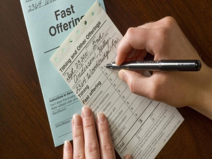 Other Offerings � Fast Offerings. Church members fast each month by going without food and drink for two consecutive meals. They contribute at least the amount of money they would have spent for the meals. They may give as generously as they are able. This offering is called the fast offering. Bishops use these fast offerings to provide food, shelter, clothing, and medical care for the needy.