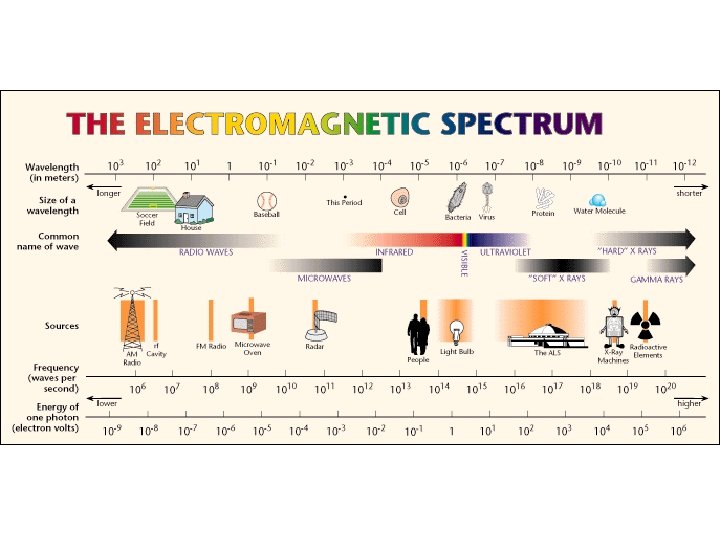 Properties of Light • Electromagnetic radiation (ER) • Form of energy the exhibits wavelike behavior • All ER forms electromagnetic spectrum • Travel at speeds of 3. 0 x 108 m/s through air • c