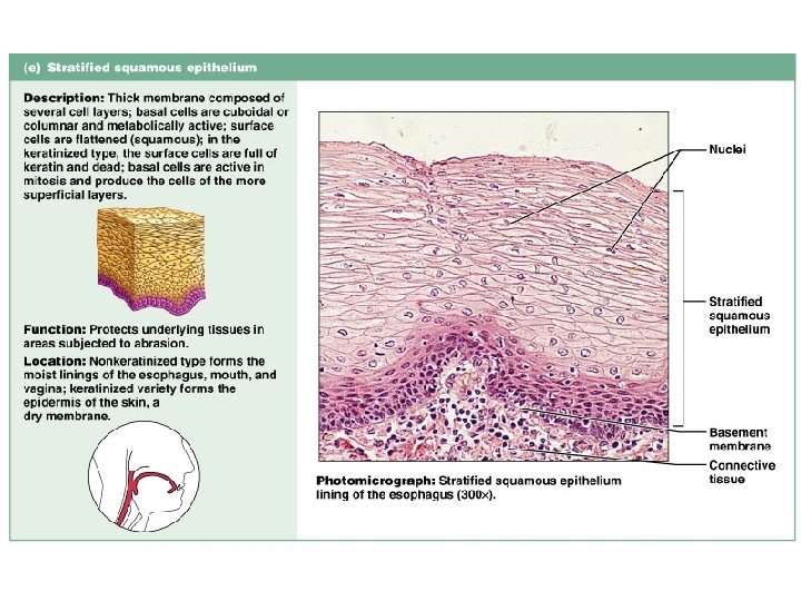 2. stratified squamous epithelium * F - protection * L – skin, oral cavity, pharynx, urinary and reproductive tracts