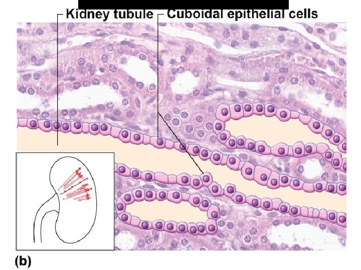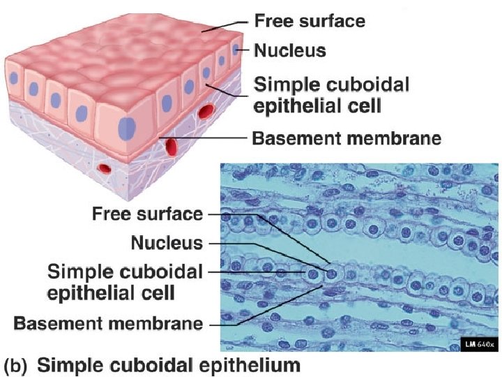 1. simple cuboidal epithelium * F – secretion, absorption * L – kidney tubules, ducts of glands, ovaries