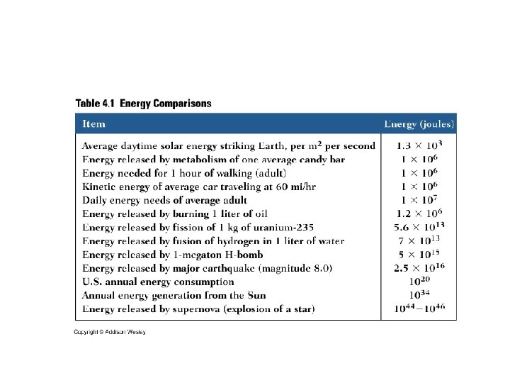 Thermal energy: the collective kinetic energy of many particles (for example, in a rock, in air, in water) Thermal energy is related to temperature but it is NOT the same. Temperature is the average kinetic energy of the many particles in a substance. © 2005 Pearson Education Inc. , publishing as Addison-Wesley