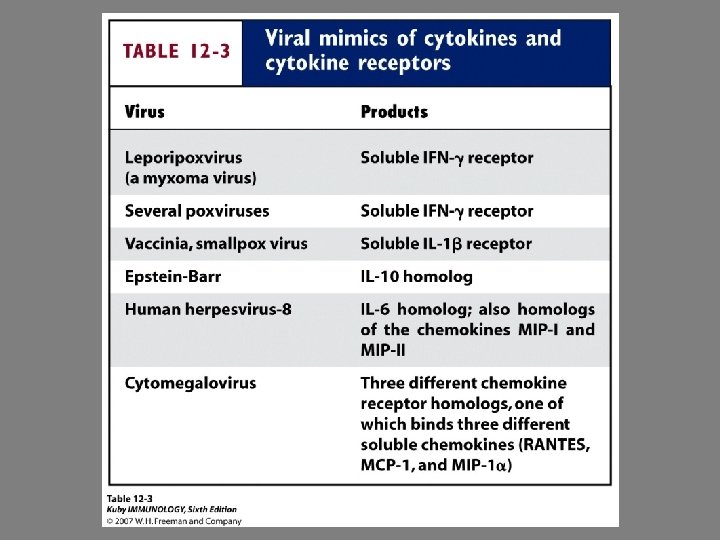 Cytokine Antagonists Number of proteins can inhibit cytokine activity ○ Can bind to receptor OR ○ Can bind to cytokine, disabling it Enzymatic cleavage of receptors and release of these can bind cytokines in the blood - Marker of chronic T cell activation (transplant rejection, AIDS) Viruses have developed strategies ○ Cytokine homologs ○ Cytokine binding proteins ○ Homologs of cytokine receptors ○ Interference with intracellular signaling ○ Interference with cytokine secretion