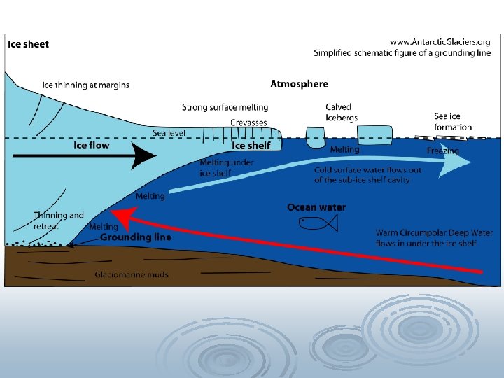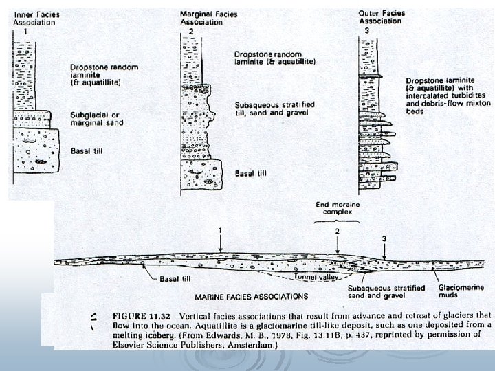 Environmental settings – all environments in contact with glacial ice l Basal or subglacial zone – bottom surface of glacier l Supraglacial zone – top surface of glacier l Ice-contact zone – lateral sides of glacier l Englacial zone – interior of glacier l Proglacial zone – glacial meltwater (fluvial, lacustrine, marine) l Preglacial zone – areas beyond direct melt water affect l Ice-rafting – debris transported in floating ice blocks (iceberg) l Dropstone – debris dropped from melting icebergs