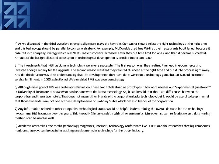 Case Study • Please read Case Study: ‘Technology as a Competitive Method: The Case of Inter. Continental Hotels’ (page 119 -125). • Please answer the discussion questions at the end of the Case Study.