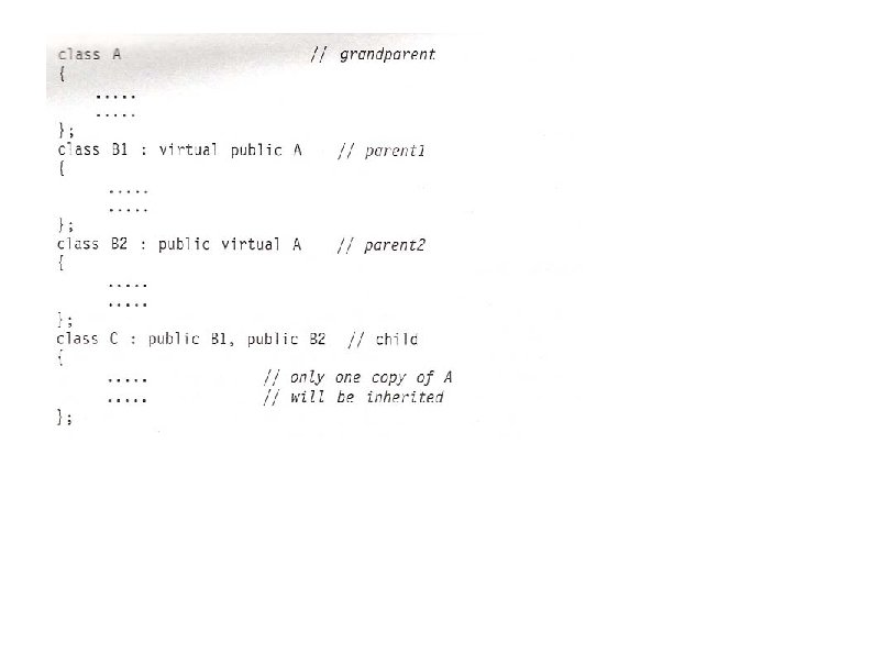 • The program shows that the object of class D have access to all public members of class B. s a is a private in class B & can’t be inherited by D • Although the data member ‘a’ is private & can’t be inherited, object of D are able to access it by an inherited functions of class B