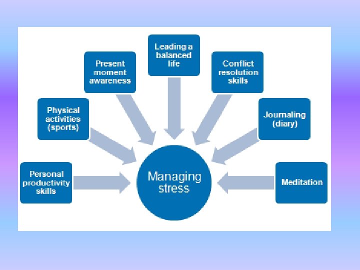 Stress management skills • skills that help individual handle stress in healthful effective ways – Avoid and Limit Stress by: • use refusal skills • plan ahead • think positively