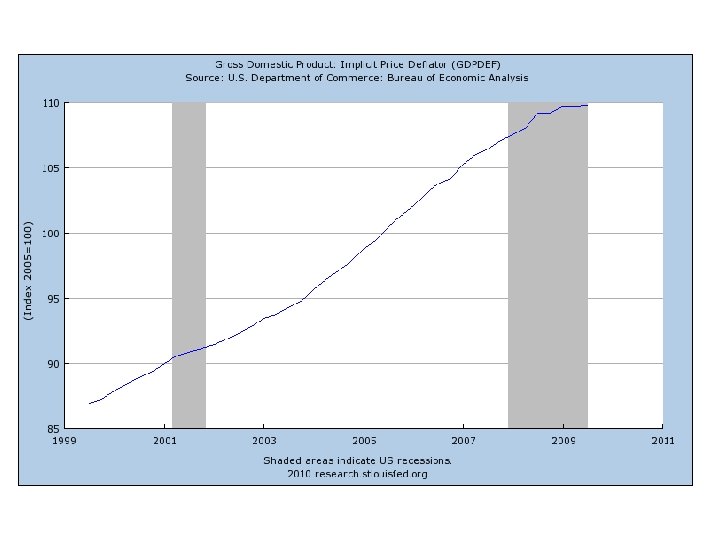GDP Deflator • GDP deflator – Provides a comparison of current and base year prices