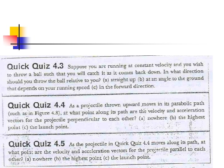 Verifying the Parabolic Trajectory n Reference frame chosen n n Acceleration components n n y is vertical with upward positive ay = -g and ax = 0 Initial velocity components n vxi = vi cos q and vyi = vi sin q
