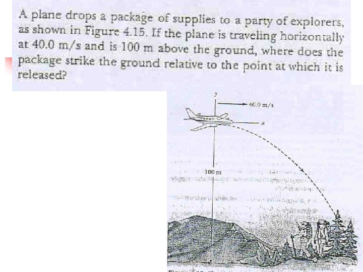 Analyzing Projectile Motion n n Consider the motion as the superposition of the motions in the x- and y-directions The x-direction has constant velocity n n The y-direction is free fall n n ax = 0 ay = - g The actual position at any time is given by: rf = ri + vit + ½gt 2