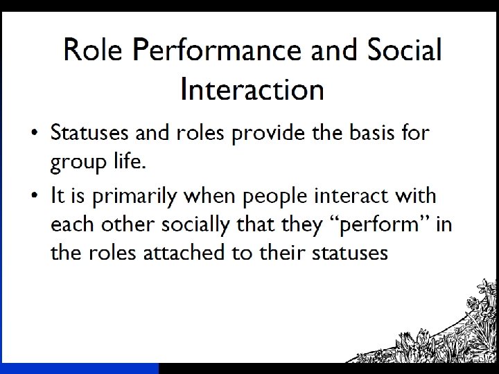 Reciprocal Roles n To be the role of “husband” you must have a role of “wife” n Corresponding roles that define the patterns of interaction between related statuses