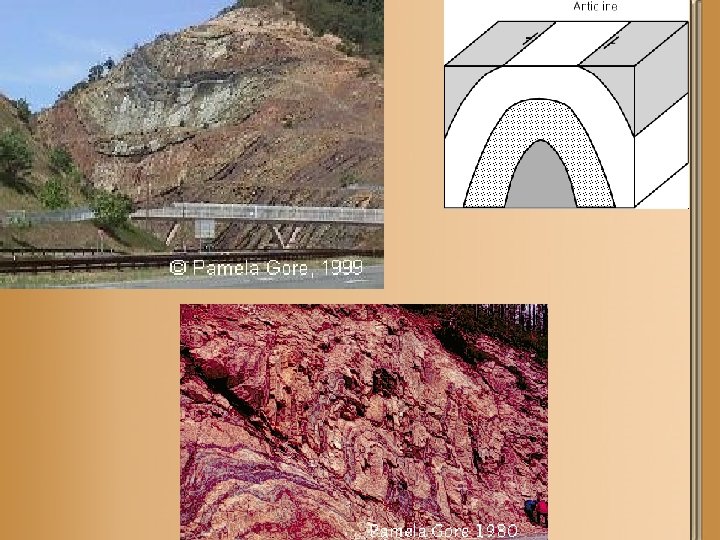 Types of Folds • The two most common types of folds are: – Anticlines: • Upward folds (arches) – Synclines: • Downward folds (troughs)