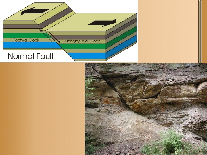 • What are the pieces of broken rock on each side of the fault called? – Fault blocks. • Two types: – Footwall – Hanging wall
