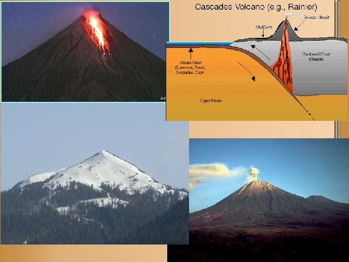 Volcanic Mountains • How are these mountains formed? – When plates collide and one is… • Subducted – The melted crust rises to form volcanic mountains
