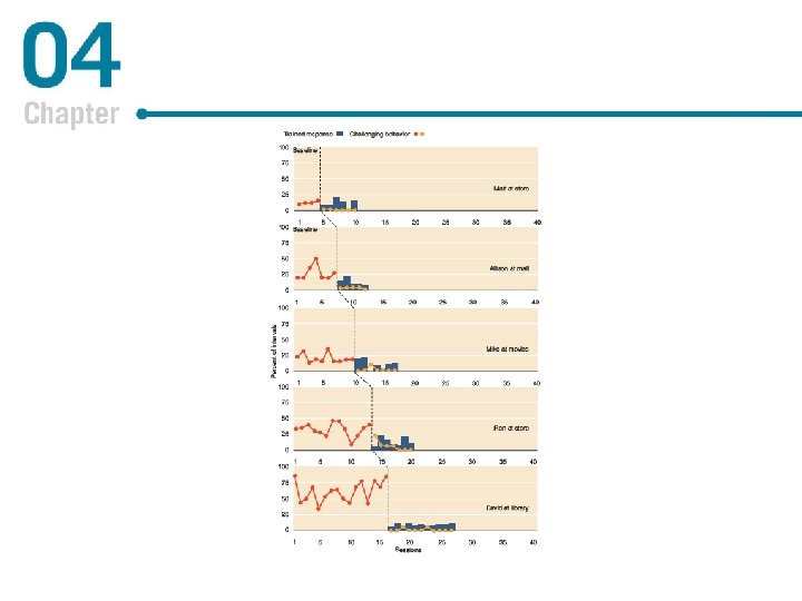 Single-Case Experimental Designs Types of single-subject design § Multiple baseline designs Start treatment at different times in different conditions (e. g. , in home vs. school settings) – see if changes occur in conjunction with introduction of treatment Improves internal validity