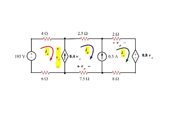 the branches currents i 1, i 2, i 3 can be written in terms of the mesh currents ia, ib Once we solve for the mesh current we can solve for any branch current Once we know the branch current we can solve for any voltage or power of interest current