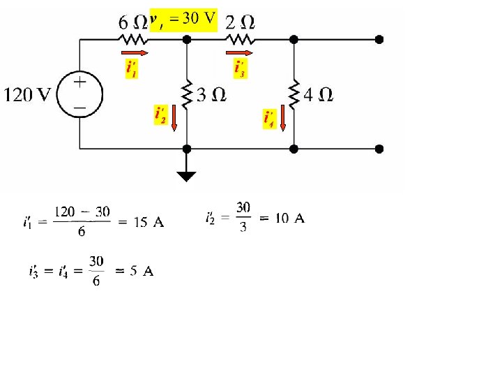 4. 13 Superposition A linear system obeys the principle of superposition which state that : Whenever a linear system is excited or driven by more than one independent source of energy , the total response is the sum of the individual responses by the independent sources Example Consider the following linear circuit We will use the principle of superposition to find the branch currents