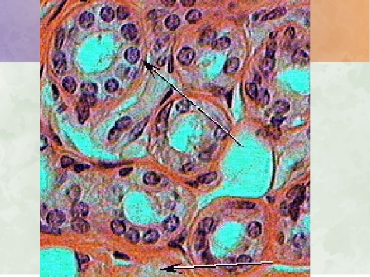Epithelial tissue – char. and location • B. Glandular or secretory tissue – cells are specialized to secrete matl’s such as digestive juices, hormones, milk, perspiration, and wax. They are columnar or cuboidal shape. 1. Endocrine gland cells – Form ductless glands which secrete their substances (hormones) directly into the bloodstream.