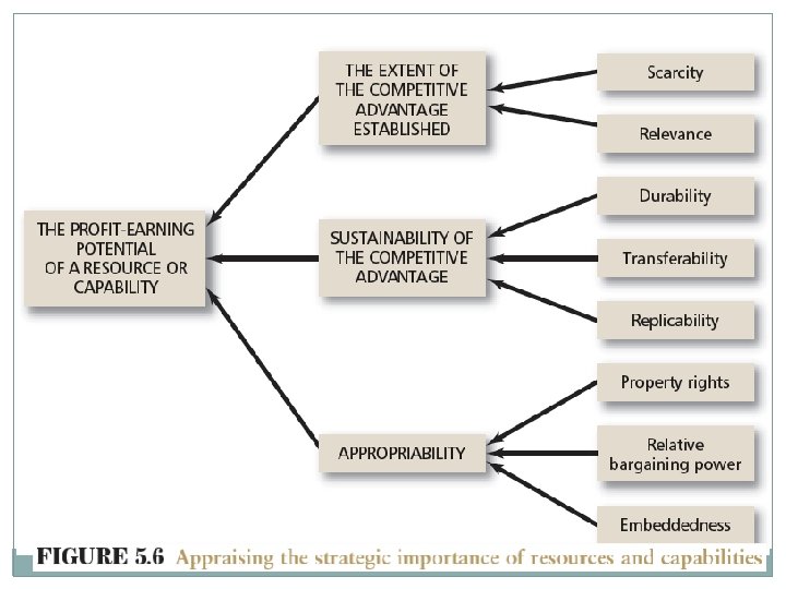 Appraising resources and capabilities �Establishing competitive advantage Scarcity Relevance �Sustaining competitive advantage Durability Transferability Reliability �Appropriating the returns to competitive advantage