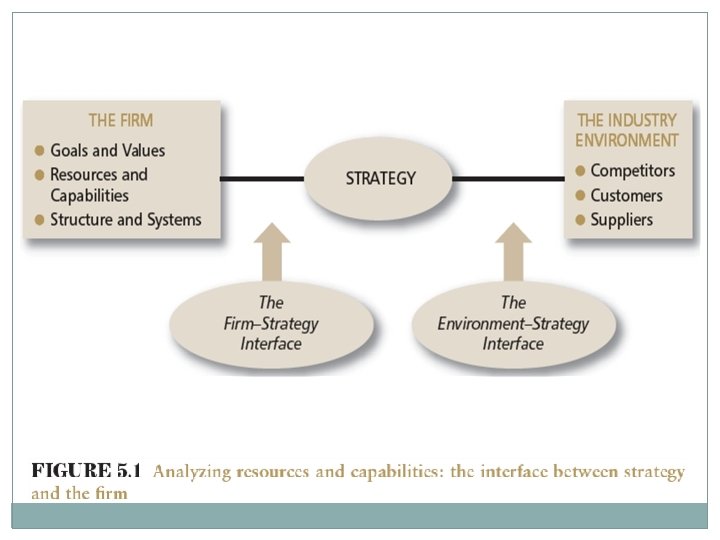 Basing strategy on resources and capabilities Strategy is concerned with matching a firm’s resources and capabilities to the opportunities that arise in external environment