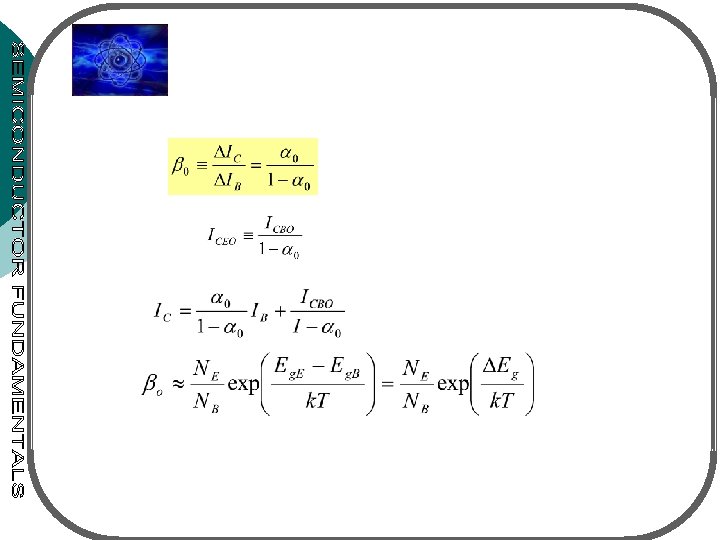 Common-base current gain Emitter efficiency Base transport factor Collector current ICBO : the leakage current between the C and B with the E-B junction open