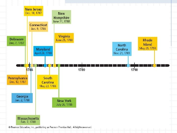 The Problem with New York: n n Wealthy landowners didn’t like b/c they thought they would have lots of taxes with the new system. John Jay and Alexander Hamilton said if the states didn’t ratify than N. Y. City would break away and join the new gov’t…so they caved. After NY and VA, North Carolina ratified in Nov. 1789, and Rhode Island did in May 1790.