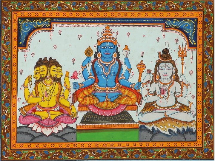Main Gods in Hinduism (The Holy Trinity) 1. Brahma • Brahma is the creator god • typically depicted with four heads, each of which recites one of the Vedas.