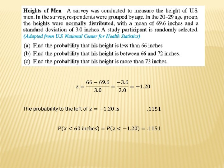 b) Find the probability that his height is between 66 and 72 inches. We need to find two z-scores and go to Table 4. We already know one of the z-scores.