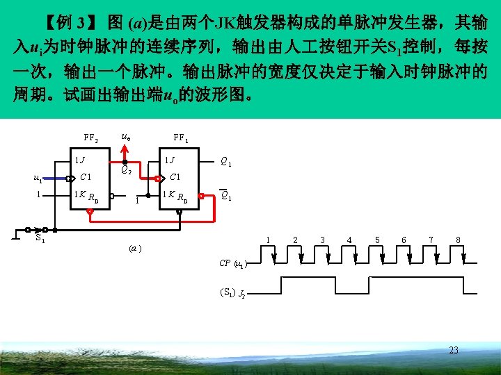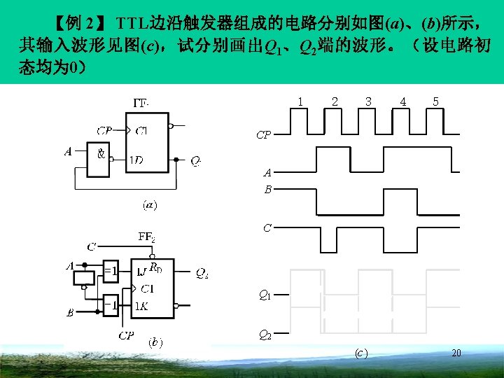 第 5章 触发器 1 A 1 J RD CP C 1 B 1 K S D 分析: Q 1 1 1 3 4 5 A B A 2 ) CP (a) CP (当B=0时, RD C 1 Q 2 B 1 D S D 1 Q 1 (b) Q 2 设电路初态均为 0 ( c) 19