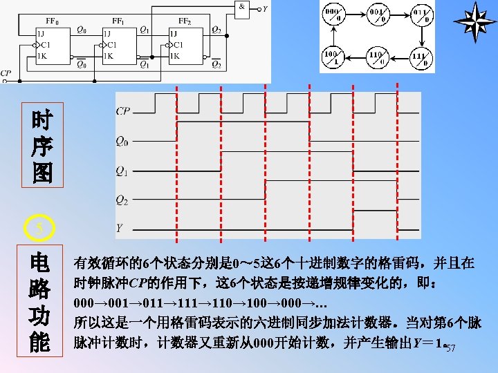 § 5. 5 The Design of Synchronous Counters (Cont. ) n n Classification of the Counters: On the basis of control mode of the clock: Synchronous Counters & Asynchronous Counters On the basis of the up or down of the sequence: up counters & down counters & up/down counters On the basis of the module of the counters: binary counters 、decimal counters & any system counters Name Binary counter Decimal counter Any system counter Module code mode Binary BCD-code Any mode Can turn on by itself ? no redundant states, can 6 redundant states need check redundant states 66