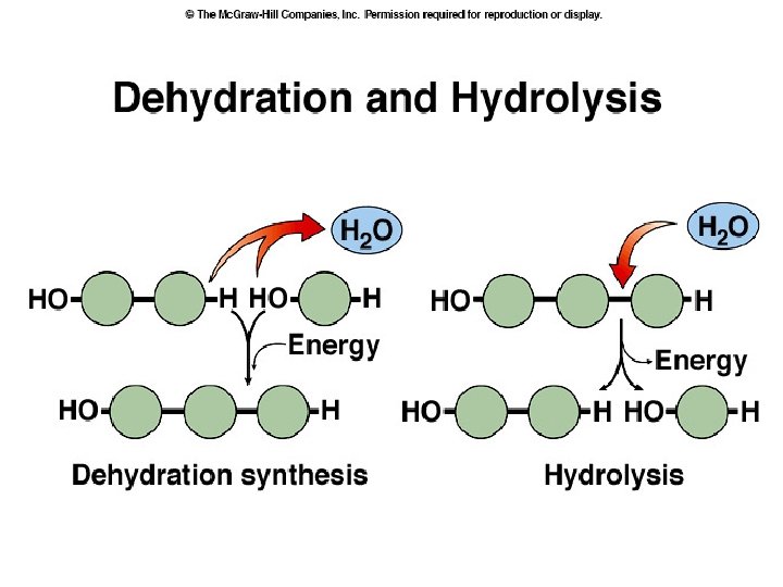 ● DEHYDRATION SYNTHESIS REACTIONS (a. k. a. condensation): polymerization reactions during which monomers are covalently linked, producing the net removal of a water molecule for each covalent linkage *process that requires energy *process that requires biological catalysts (enzymes)
