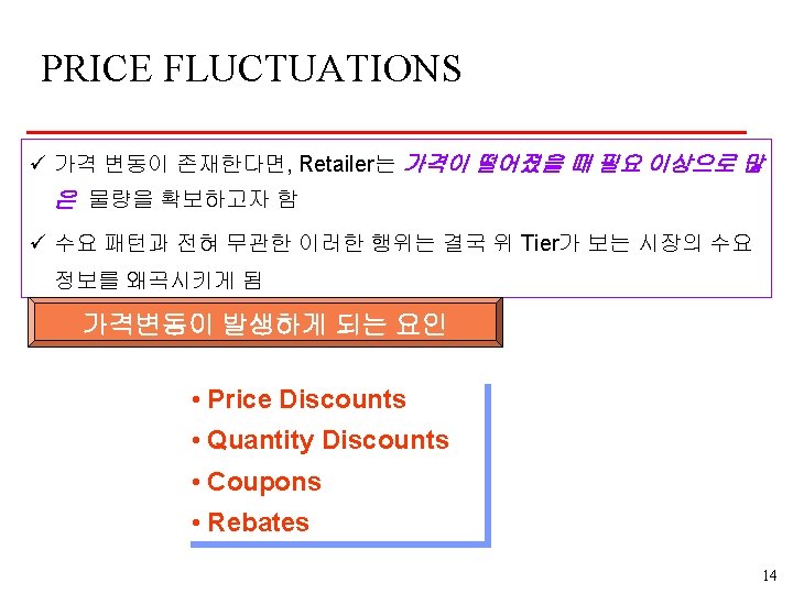 INFLATED ORDERS - Shortage Gaming Retailer가 재고부족으로 Lost Sales를 경험했다면, 실제 이상으로 수요를 과장(exaggerate) 해서 “Phantom Order”를 내는 경우가 있음. 그러나 후에 수요가 수그러들기 시작하면, 이 phantom order들은 갑자기 사 라지고 Supply chain의 위 Tier들은 심각한 Bullwhip Effect를 경험하게 됨. 1992 and 1993 Xmas shopping season에 휴대폰 수요가 급증, Motorola는 Distributor들에게 충분한 물량을 제공하지 못하는 사태가 발생. Air. Touch Communications, Baby Bells 같은 Distributor들은 94년에도 그러한 공급부족 사태를 예상하여 drastically over-ordering at end of 1994 (Business Week, March 6, 1995). 그러나 Wall Street는 Motorola Dealer들의 재고가 넘쳐나는 것을 보고 새로 운 주문들이 Phantom Order라는 것을 알게 되었음. Motorola’s stock tumbled almost 10%! 15