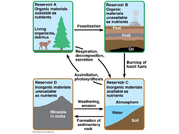 Matter Cycles in Ecosystem • Biogeochemical cycles: nutrient cycles that contain both biotic and abiotic components • organic inorganic parts of an ecosystem • Nutrient Cycles: water, carbon, nitrogen, phosphorus