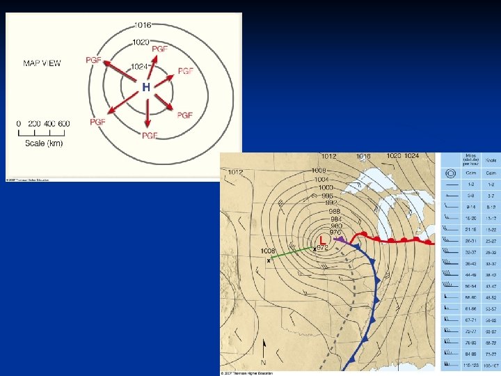 Pressure Gradient Force n pressure gradient (pressure difference/distance) n pressure gradient force (from high to low pressure) n strength and direction of the pressure gradient force • The horizontal (rather than the vertical) pressure gradient force is responsible for causing air to move.