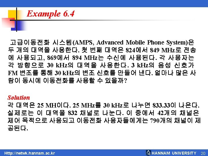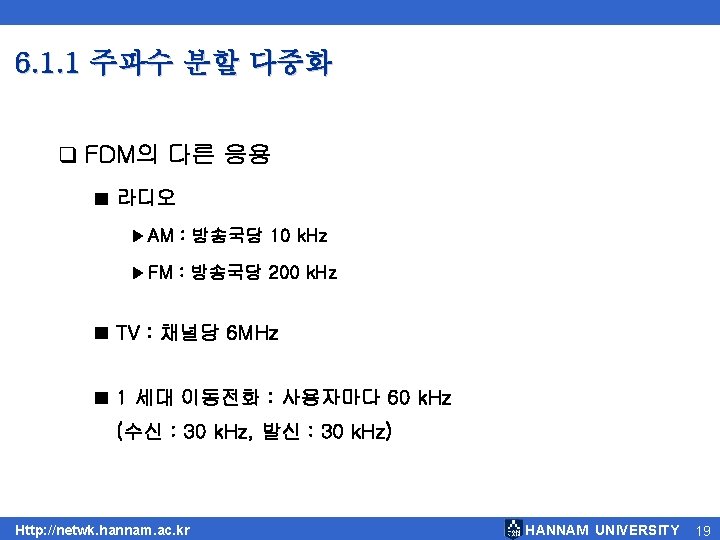 6. 1. 1 주파수 분할 다중화 q 아날로그 계층구조 Http: //netwk. hannam. ac. kr HANNAM UNIVERSITY 18