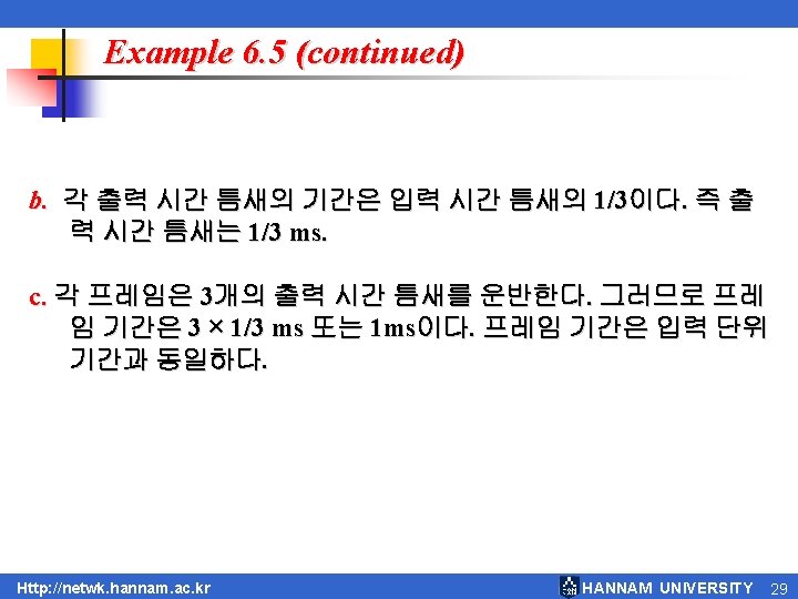 6. 1. 3 시분할 다중화 q 시간틈새(time-slot)와 프레임(frame) Http: //netwk. hannam. ac. kr HANNAM UNIVERSITY 26