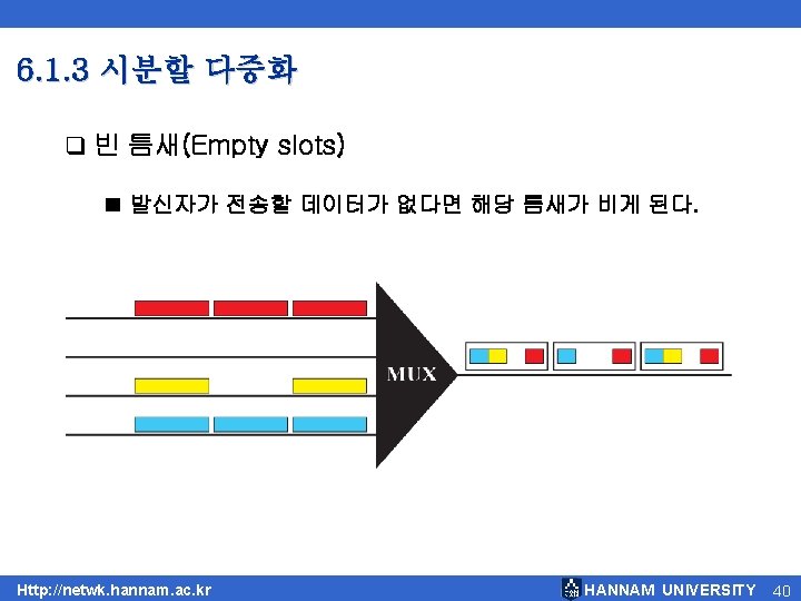 6. 1. 3 시분할 다중화(계속) q 통계적 TDM ■ TDM 틈새(동기와 통계적) 비교 Http: //netwk. hannam. ac. kr HANNAM UNIVERSITY 54
