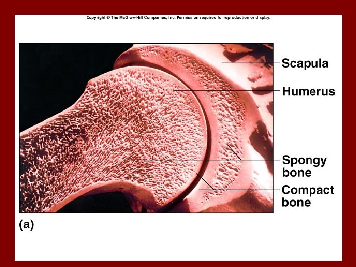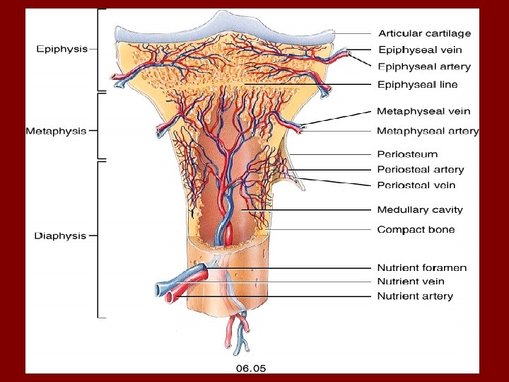 “GROSS” structure of a typical bone • Articular cartilage: Consists of Hyaline cartilage covering the end of the bone surface where it articulates with another bone, (e. g. femur and tibia, humerus and scapula). Fibrocartilage makes up the menisci of the knee joints. • Epiphyses: The end of the bone. One at each end of long bones. • Epiphyseal line: Remnant of the cartilaginous “growth plate” or epiphyseal plate.