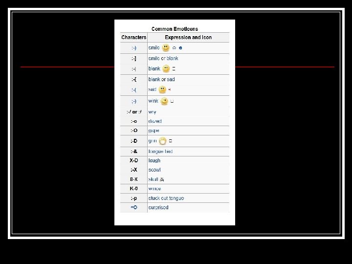 The 10 rules of “Netiquette” n n n n n Make messages brief and to the point. Don’t use e-mail alone to convey urgent messages. Use group replies or mass mailings only when necessary. Avoid having people read irrelevant material. Use e-mail only as a supplement to other forms of interaction. Treat people with respect, just as you would in person. Respect the time and privacy of others. Don’t flame people. DON’T USE ALL CAPS!! THAT’S THE E-MAIL EQUIVALENT OF SHOUTING!!! Don’t put anything into an e-mail that might come back to haunt you later.