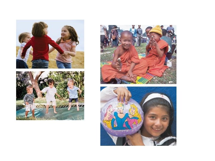 Play • Play is very important because through play with peers, children learn appropriate social norms • It is the most productive and enjoyable activity that children do; play is subjective to gender, culture, ecological context (setting) and age • How has media influenced children’s play? • Children have sexual awareness by age 6 • Play is universal – Archeologists find toys that are many thousands of years old – Anthropologists report play in every part of the world