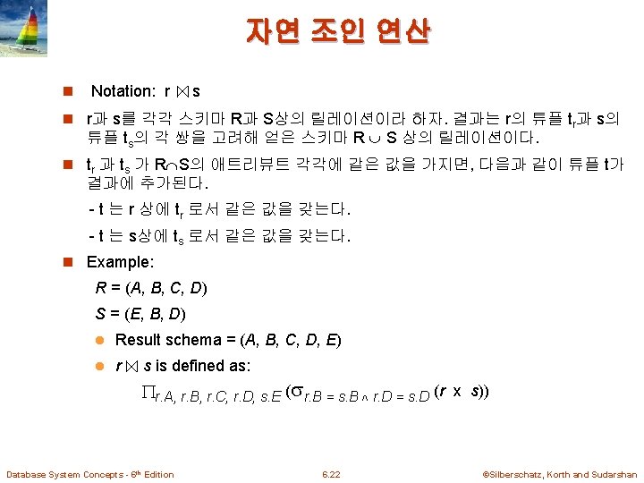 Set-Intersection Operation – Example n Relation r, s: n r s Database System Concepts - 6 th Edition 6. 21 ©Silberschatz, Korth and Sudarshan