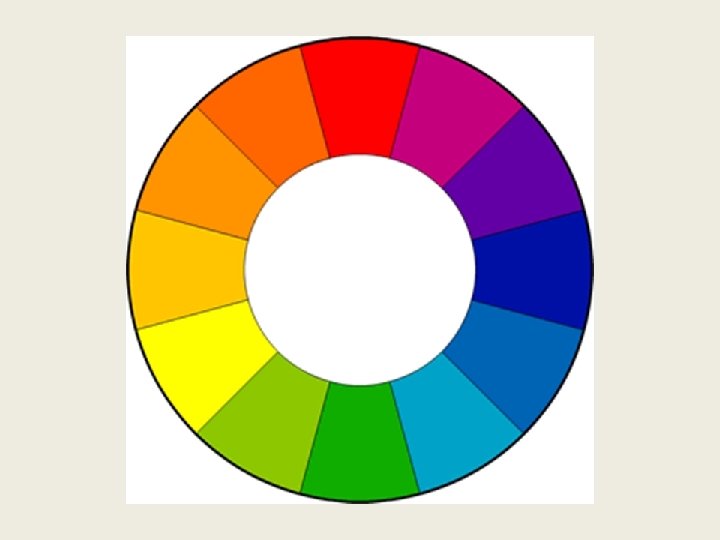Subtractive Process • We understand the color wheel through the subtractive process. • Important groups of colors within the subtractive process: – Primary Colors – Secondary Colors – Intermediate Colors