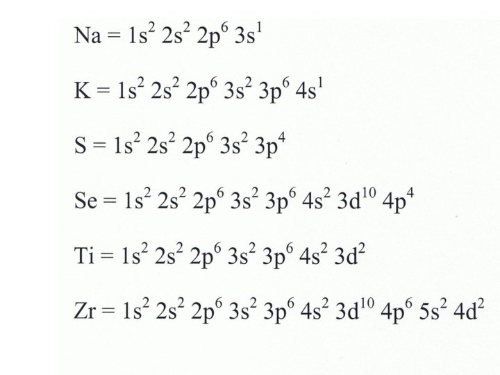 Write the electron configurations. • 20 Ca = [Ar]4 s 2 • 94 Pu = [Rn]7 s 25 f 6 • 77 Ir = [Xe]6 s 24 f 145 d 7