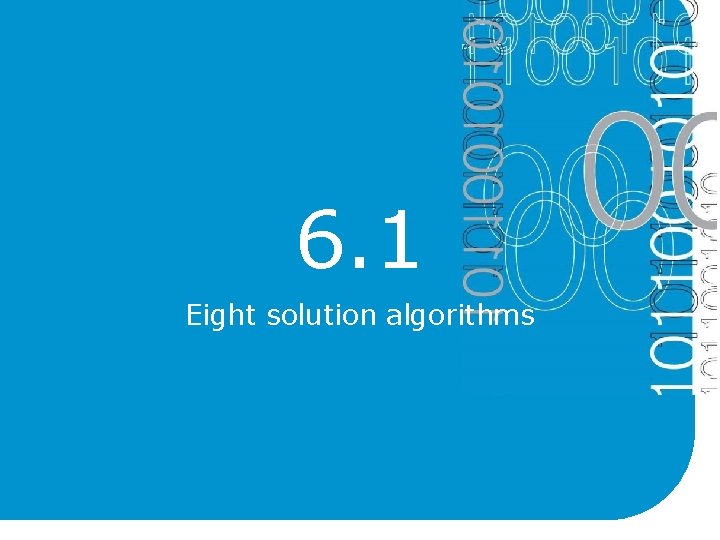 Eight solution algorithms • Each programming problem will be defined, the control structures required will be determined and a solution algorithm will be devised
