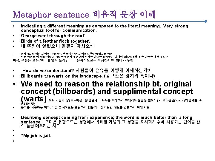 WM and sentence process작업기억과 문장처리 • high WM capacity people judge more efficiently for appropriateness of sentence 작업기억이 큰 사람일 수록 중의적인 단어들의 • • 부적절한 의미를 효과적으로 기각함 글 읽기가 서툰 사람은 부적절한 정보를 억제하지 못함 중앙집행기와 관련있는 억제 기제가 일반적인 글 이해 기술의 한 구성요소임 Just & Carpenter(1992) Garden path sentence processing is better for high WM (WM 용량이 큰 사람이 더 잘 파악함) The horse raced past the barn fell. High WM capacity people are better for pragmatic cues. • WM capacity is related with complexity of text in the LIWC analysis (Lee and Won, 2018)