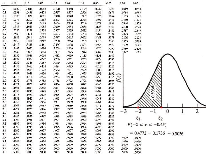 Example: The lifetime of a battery is normally distributed with a mean life of 40 hours and a standard deviation of 1. 2 hours. Find the probability that a randomly selected battery lasts longer than 42 hours. Answer: 4. 779%