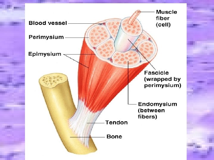 – ______________= many fascicle bound together w/ this tough coat – Epimysia blend into the strong_, cordlike_____ or aponeurose(sheetlike) that connect muscle to bones, cartilages or connective tissue – Other functions of tendons-besides movement-are durability and conservation of space epimysium tendons