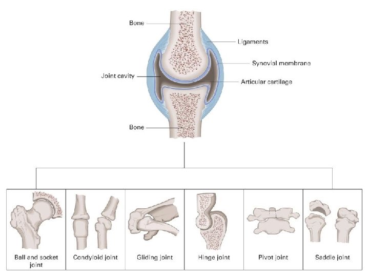 Objectives 8. Demonstrate each of the following joint movements (slide 48): a. b. c. d. Flexion and extension Adduction and abduction Circumduction Pronation and supination 9. Describe each of the following types of joints (slide 49): a. b. c. d. e. f. Ball-and-socket Hinge Pivot Gliding Saddle Condyloid