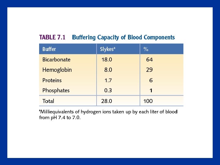 Respiratory Regulation of Acid–Base Balance • Excess H+ (decreased p. H) impairs muscle contractility and ATP generation • The respiratory and renal systems help regulate acid– base balance – Respiratory: short-term – Renal: long-term • Increased H+ concentrations stimulate respiratory centers to remove CO 2 • Whenever H+ levels begin to rise, from carbon dioxide or lactate accumulation, bicarbonate ions can buffer the H+ to prevent acidosis