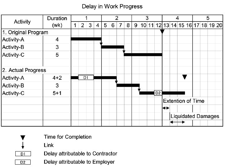 Types of Delay cont… • • ü E. g. Unforeseen ground conditions, Delay caused by Owner, Delay caused by Engineer Non-compensable delay: excusable delay for which the contractor may be entitled to an extension of time but no additional monetary compensation. – E. g. Adverse weather Concurrent delay : Concurrent delay is experienced when two or more separate delay events occur during the same time period and each, independently, affects the completion date. Several combinations of delays Resultant delay – Detailed analysis of updated schedule – Dominant cause, etc. – The claimant has the proof of burden